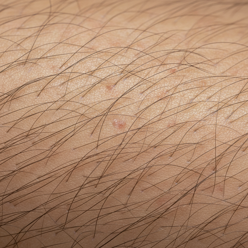 Votre cycle naturel de repousse : poils visibles, épais et drus. Le sérum prépare la peau et commence à cibler les follicules.